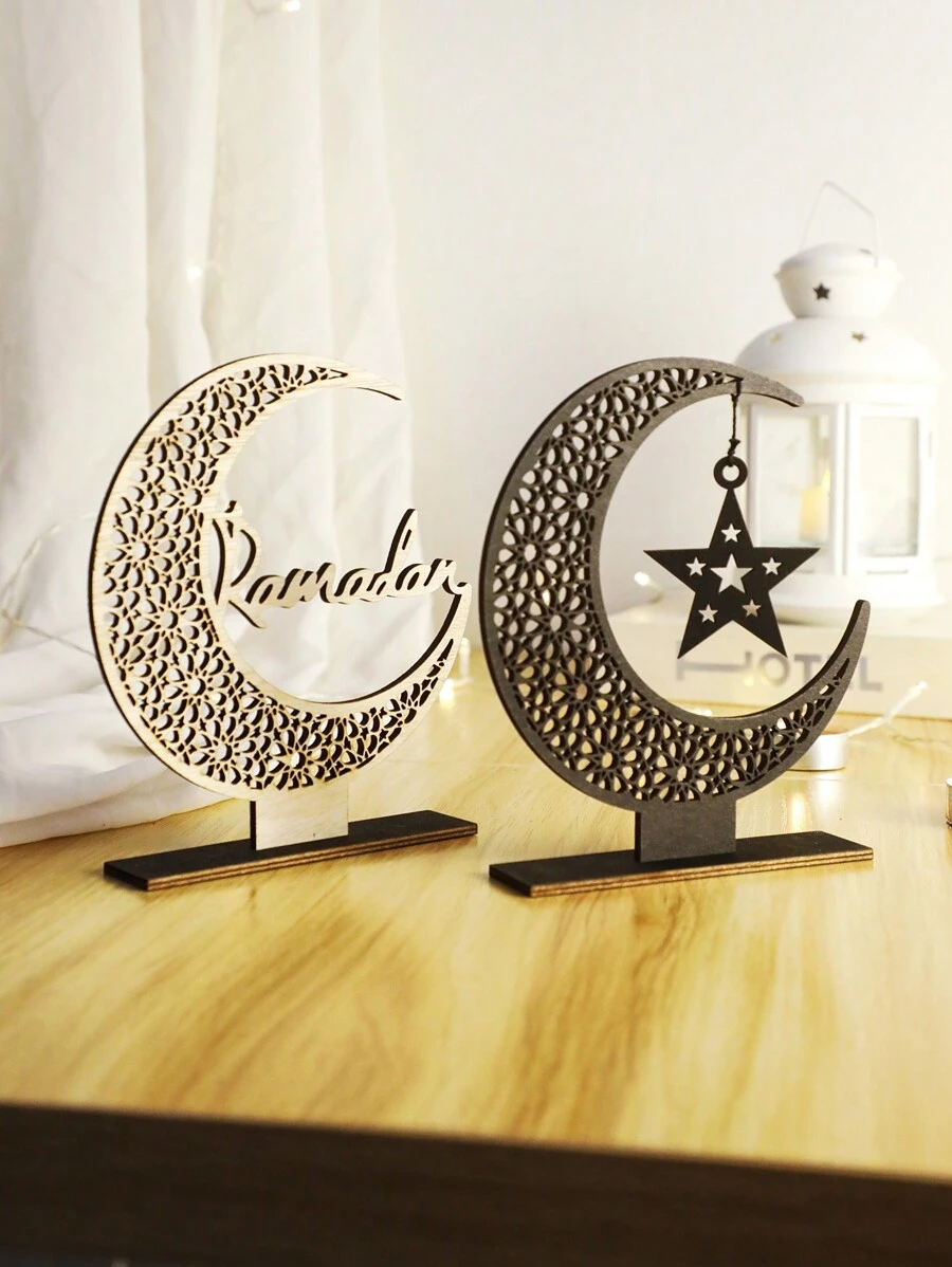 1pc Wooden Crescent Moon Decor - Easy Installation, Suitable For Eid Al-Fitr