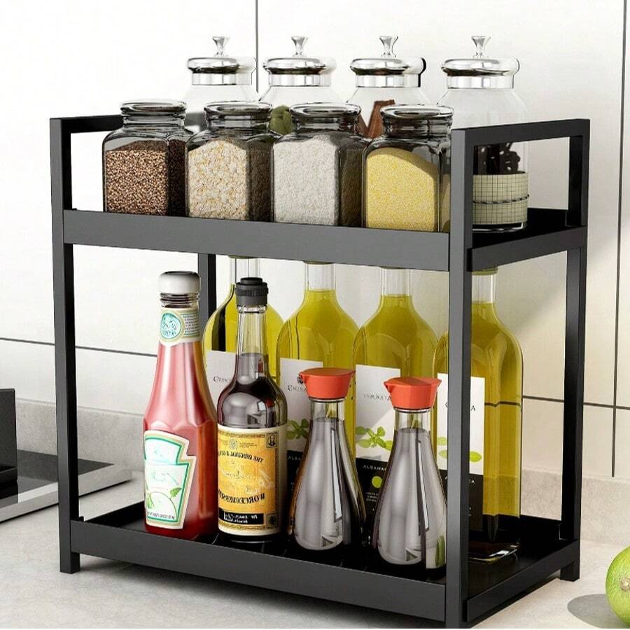 2-Tier Kitchen & Bathroom Organizer Rack, Multifunctional Storage Shelf For Spices, Perfumes, Cosmetics - Space Saving, Easy Assembly, Home Essentials