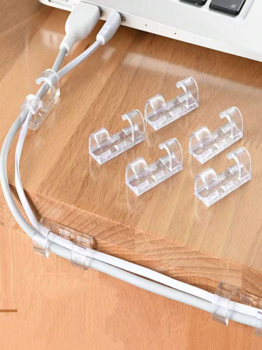 20/40/100pcs Self-Adhesive Cable Clips, Transparent Sticky Cable Organizer Clips, Wire Fastener For TV, Laptop, Desktop, Home & Office