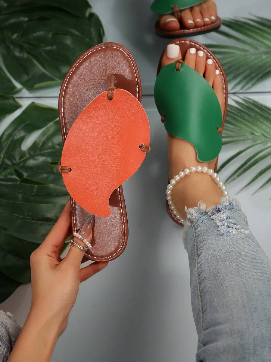 2024 Summer New Mango Two Tone Women's Non-Slip Slip-On Flat Sandals For Outdoors