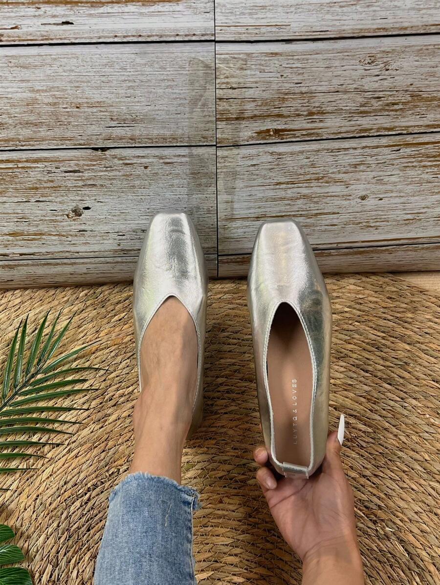 2025 Spring & Summer New Smooth Square Toe Shallow Work Flat Shoes, High-End Plus Size Women Soft Sole Breathable Comfortable Platform Flats