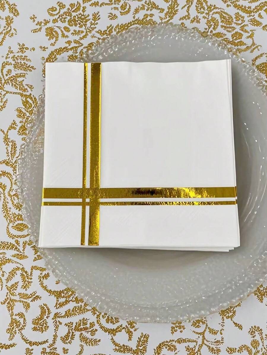 20pcs Gold Foil Striped Disposable Paper Napkins, Minimalist & Practical Multipurpose