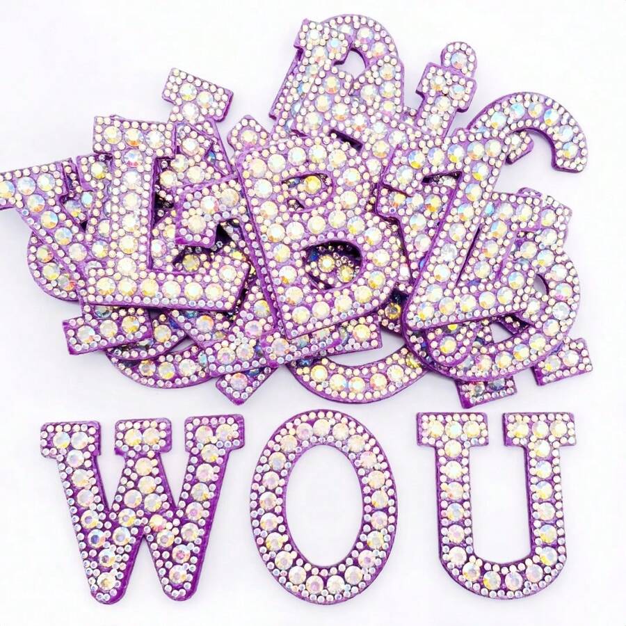 26pcs AB Colored Adhesive Back Letter Rhinestone Letter ABC Stitching Iron Patch Rainbow Shining Emblem Name DIY Dress Jeans Application Decoration Accessories
