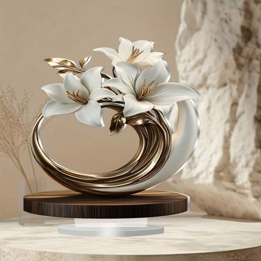 2D Flat Bohemian Style Acrylic Lily Sculpture - Desktop Floral Decor, Suitable For Home, Office, Cafe - Universal Bohemian Style Decor, English Words, Pre-Drilled Holes, Random Hole Style
