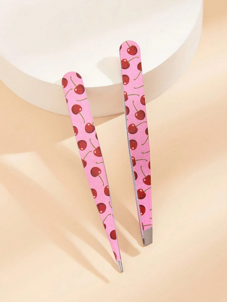 2pcs Fruit Print Tweezers, Cute & Practical Eyebrow & Makeup Tools, High Quality Stainless Steel Eyebrow Tweezers For Plucking, Picking, False Lashes & Nail Decoration, Eye & Nail Care Tools, Perfect Christmas Gift,Cheap,Stocking Stuffers,Makeup,Makeup Tools,Cheap Stuff,Gifts,Gifts For Women,Christmas Gifts
