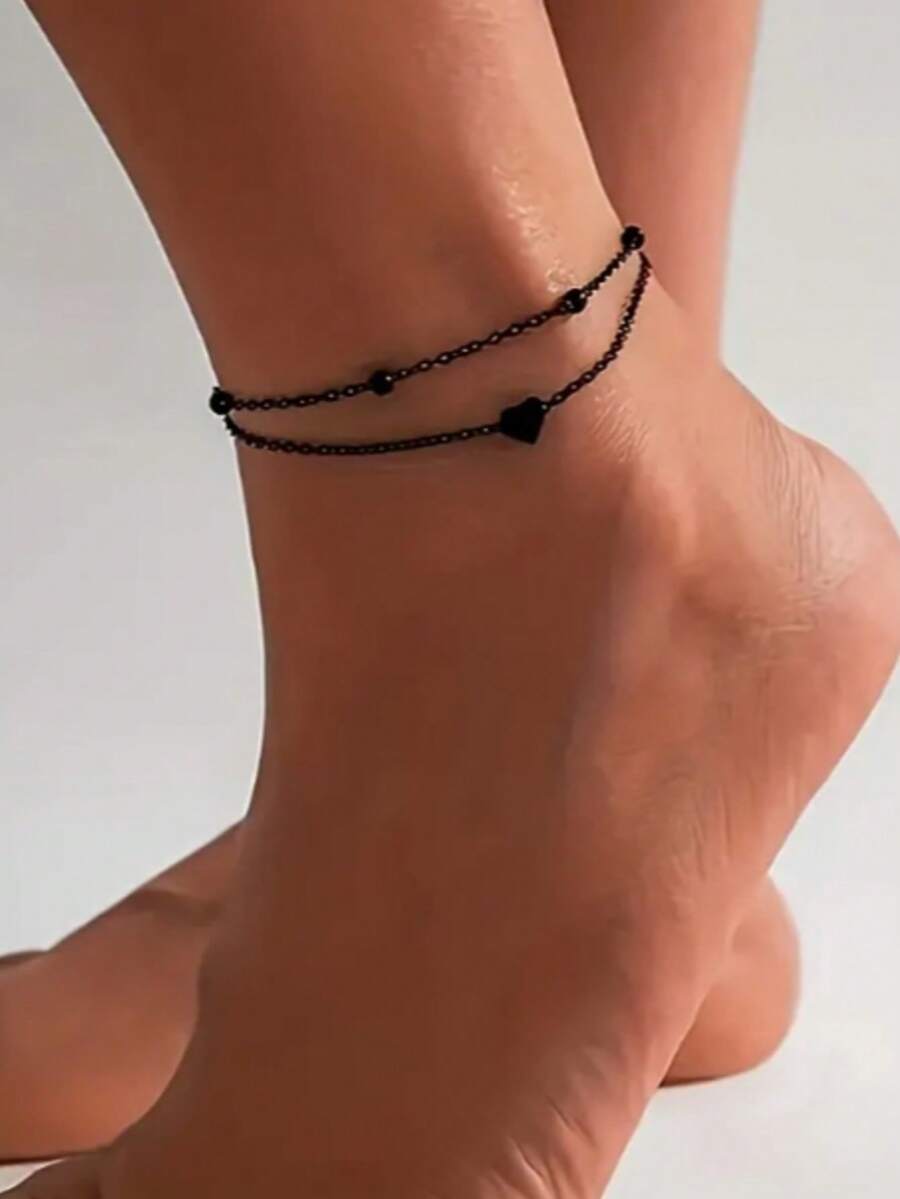 1pc Gothic Style Black Heart Chain Anklet, Suitable For Daily Wear And Festive Occasions