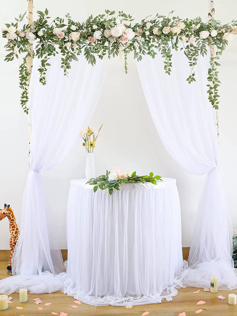 4pcs/2pcs White Sheer Voile Backdrop Curtains For Party Wedding, Chiffon Transparent Backdrop Curtains For Shower, Birthday Party, Photo Booth Decor