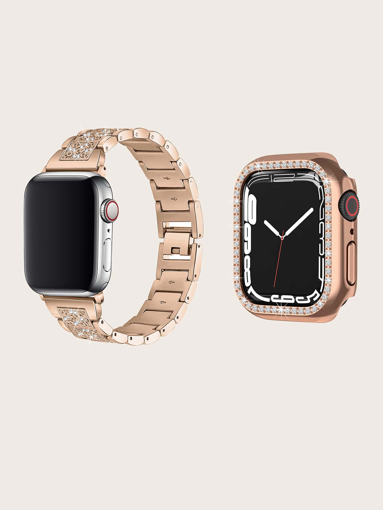 2pcs Rhinestone Case & Watchband Compatible With Apple Watch
