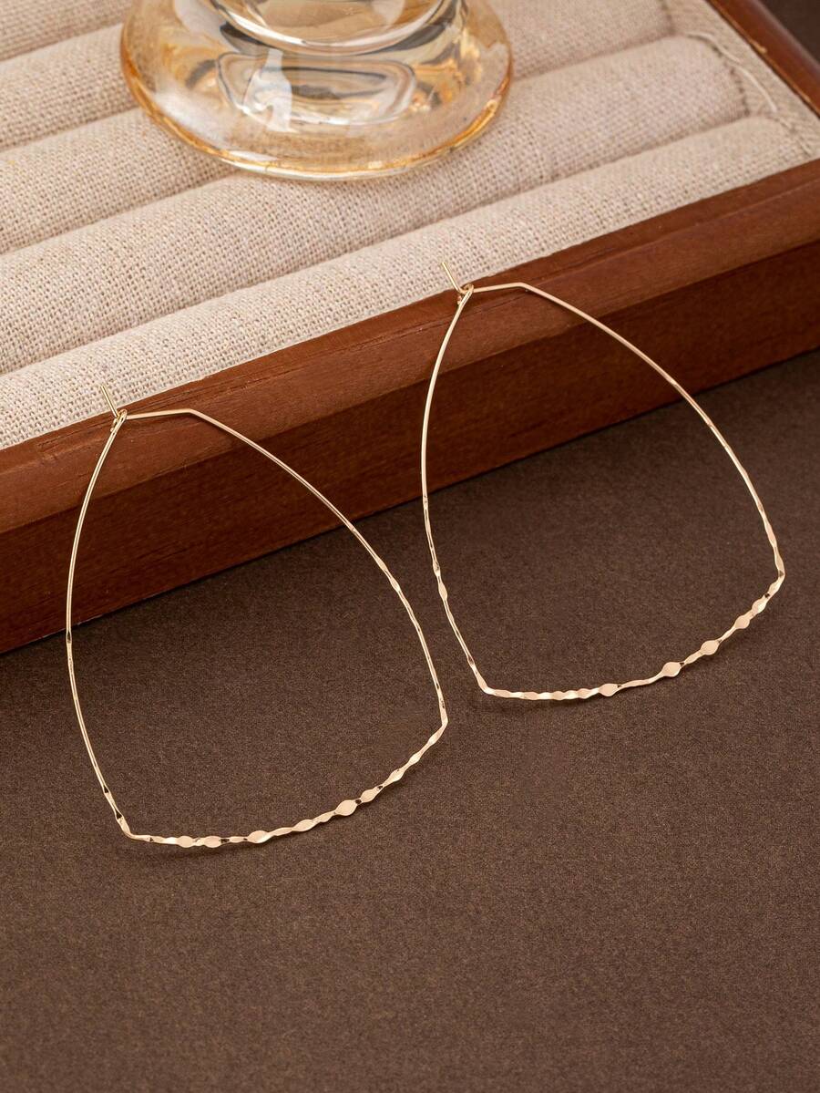 • 2pcs/Set Minimalist Delicate Line Geometric Triangle & Circle Hoop Earrings, Fashionable Jewelry Accessories, Great Gift - Yellow Gold - View 6