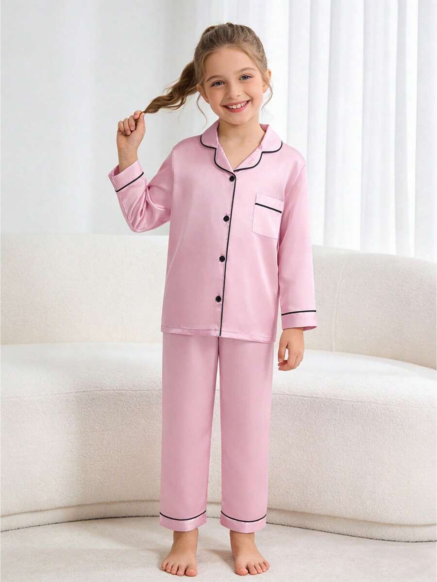 2pcs/Set Tween Girls' Pink Long Sleeve Sleepwear Set