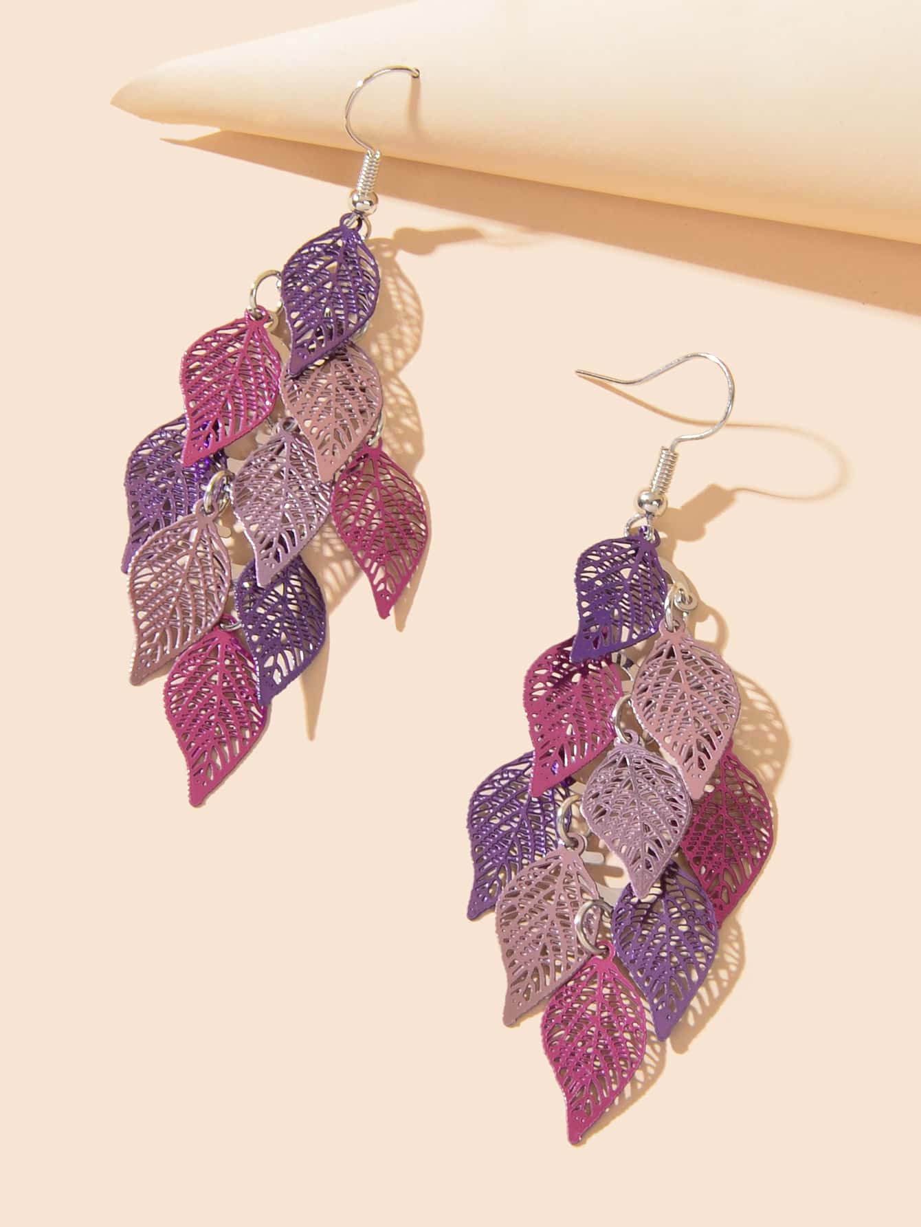 2pcs Simple Purple Leaf Shape Earrings