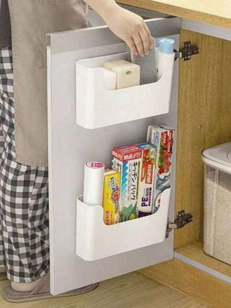 2pcs Wall Mounted Storage Rack, Multifunctional Makeup & Miscellaneous Storage, Kitchen Storage Shelf, Wall Mounted Storage Box, Cabinet/Fridge Door Organizer, Cling Film Storage Box
