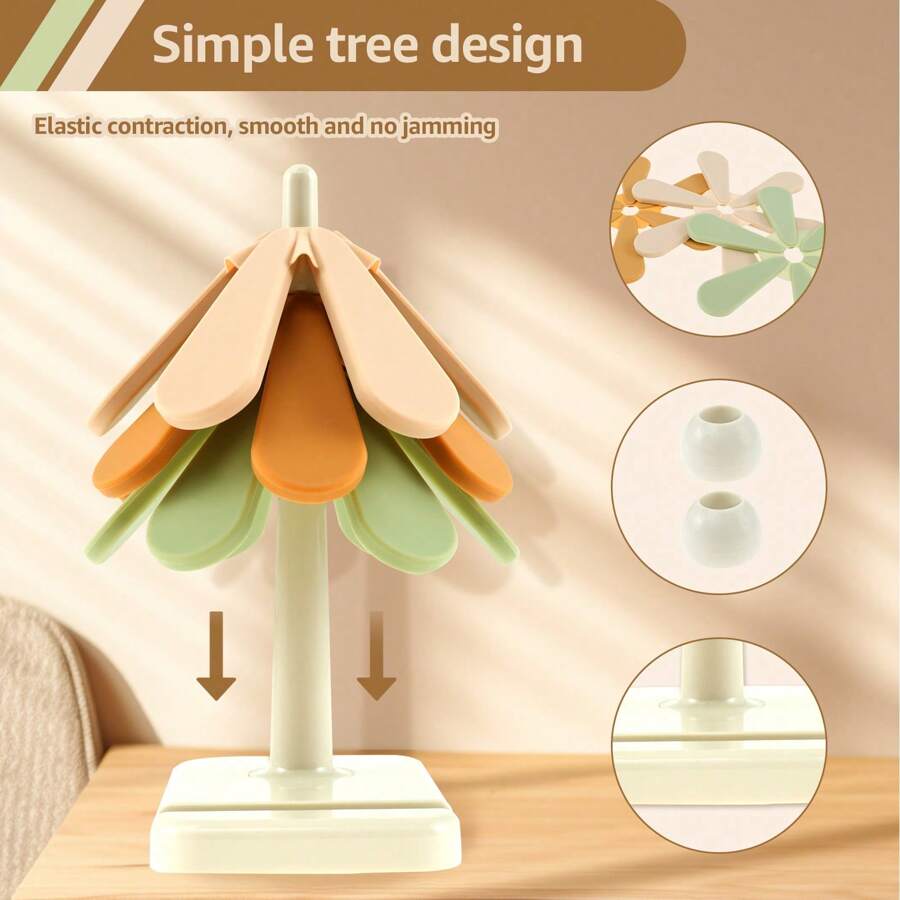 3 Pcs Silicone Trivets Tree Shape Trivet Mat With Storage Holder Heat Resistant Silicone Hot Pad Flexible Kitchen Trivets For Hot Dishes Pots Pans Cups