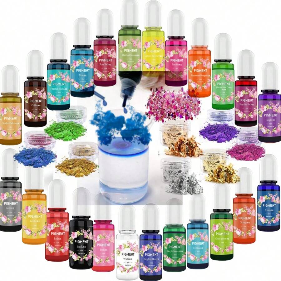 30 Colors Epoxy Resin Pigment Dye Liquid, Random Sticker Included (Color Difference Exists), Epoxy Resin Coloring Dye For Resin Jewelry Making - For Arts