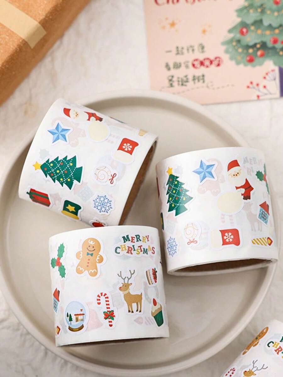 300 Sheets/Roll Christmas Sticker Roll, Cartoon Christmas Element Image Self-Adhesive Labels, Used For Gift Packaging, Holiday Party Decoration, Stationery Decoration, Irregular Shape Disposable Sticker Pack, Suitable For Christmas Gifts, Back-To-School Decoration