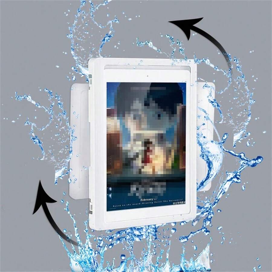 360° Rotation Waterproof Shower Tablet Holder Punch-Free Bathroom Wall Mounted Ipad Storage Box Anti-Fog Touch Screen Watching TV Rack (Suitable For Tablets Up To 11 Inches)