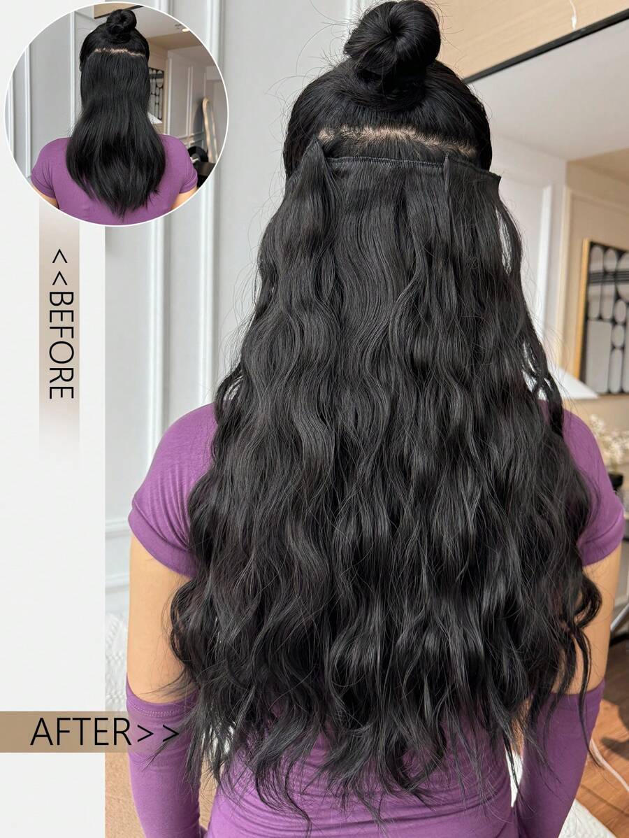 3PCS 20inch Long Wave Black Hair Clips In False Styling Hair Synthetic Clip In Hair Extensions