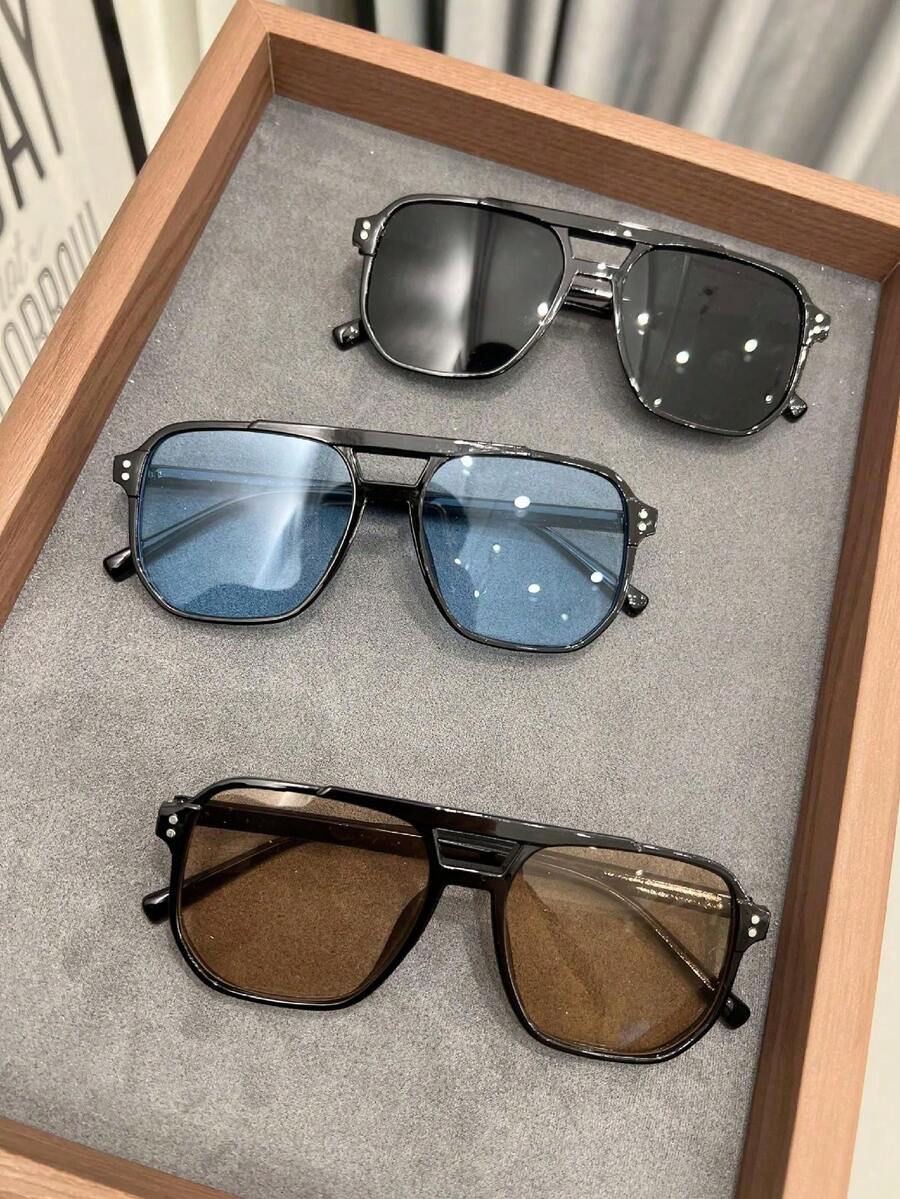 3pcs Fashion Oversized Double-Bridge Rivet Plastic Ocean Style Fashion Glasses, Suitable For Outdoor Use Aviator Shape Shades