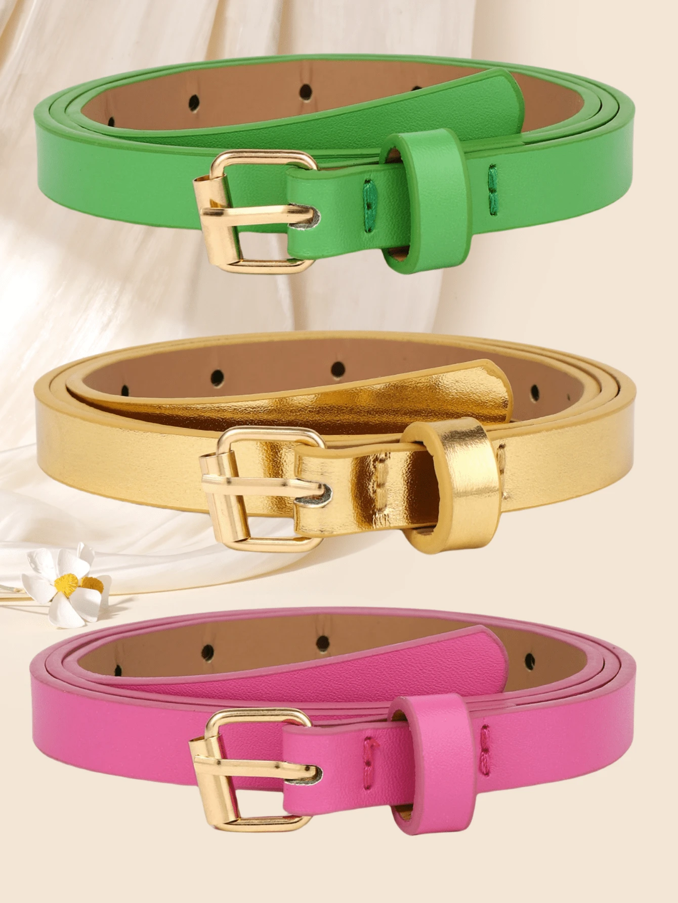 3pcs Square Buckle Belt, Pink Accessories, Gold Belt Summer, School Fall, Autumn, Halloween