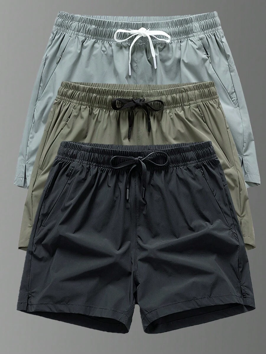 3pcs/Set Boyfriend Style Men's Solid Color Zippered Pocket Elastic Waterproof Quick-Drying Ice Silk Sport Shorts