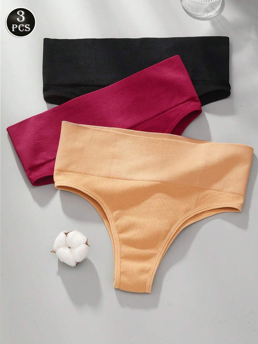 VKME 3pcs/Set Women Seamless High Waist Intimate Underwear Set