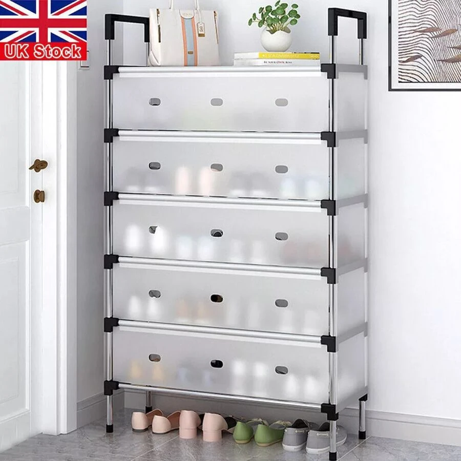 • NetHong 4/5/6/7 Tier Cabinet Storage Organiser Shoe Rack Stand Holder W Dust-Proof Cover,Doorway Simple Shoe Rack,Space Saving Storage Rack,Hallway Aisle Entryway Storage Shoe Cabinet,Easy Installation - Black - View 14