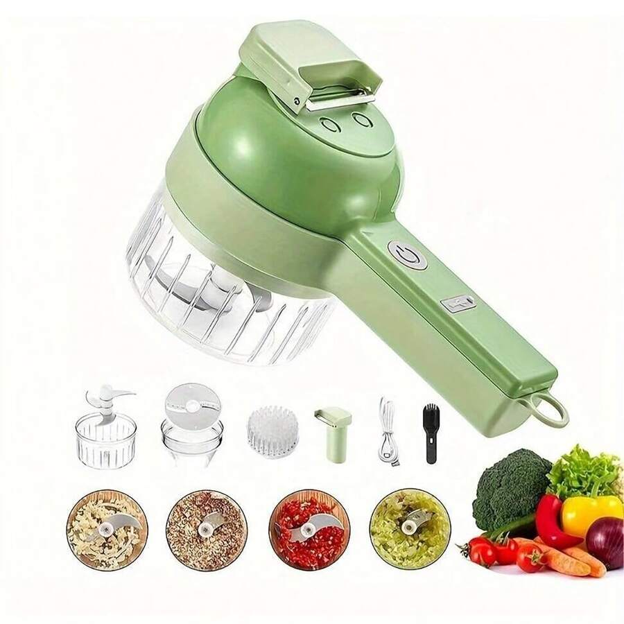 4-In-1 Electric Vegetable Slicer - Portable Handheld Multifunctional Food Processor, USB Charging With Rechargeable Lithium Battery, 8000 RPM Stainless Steel Blades, Mini Electric Chopper And Cutter