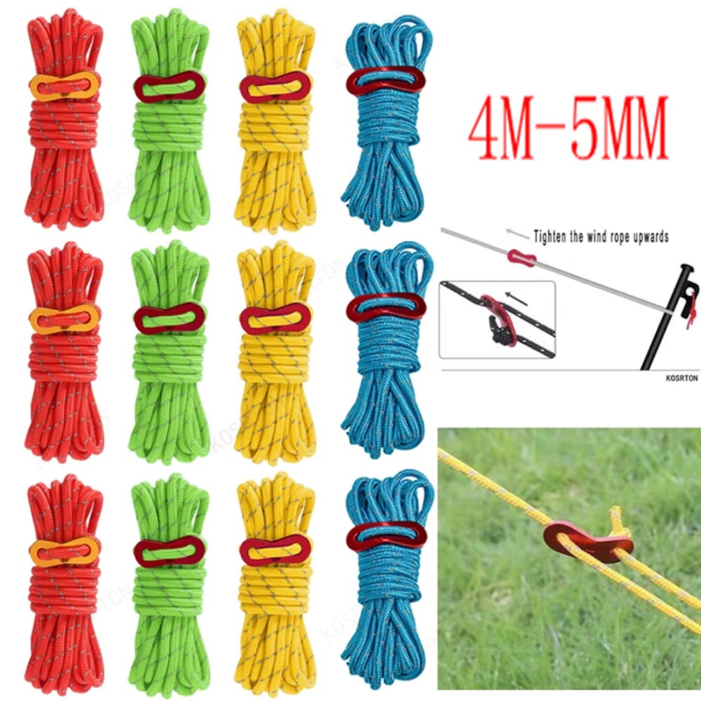 4m Adjustable Fixed Wind Rope For Outdoor Canopy Clothesline With Aluminum Adjuster For Tent And Tarp 5mm Reflective Rope Camping Guy Line With Wind Rope Buckles, Thickened 5mm Nylon Rope With For Fishing Umbrella And Camping Tent