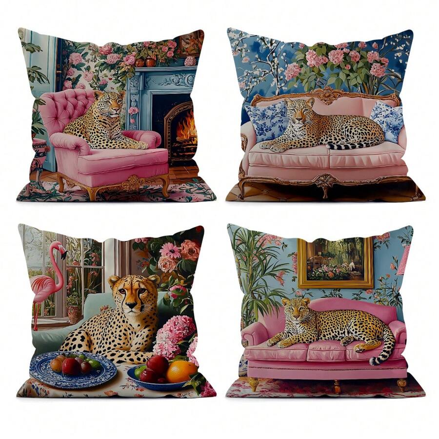4pcs Chinese Style Leopard Print Cushion Covers, 45*45cm Single-Sided Printed