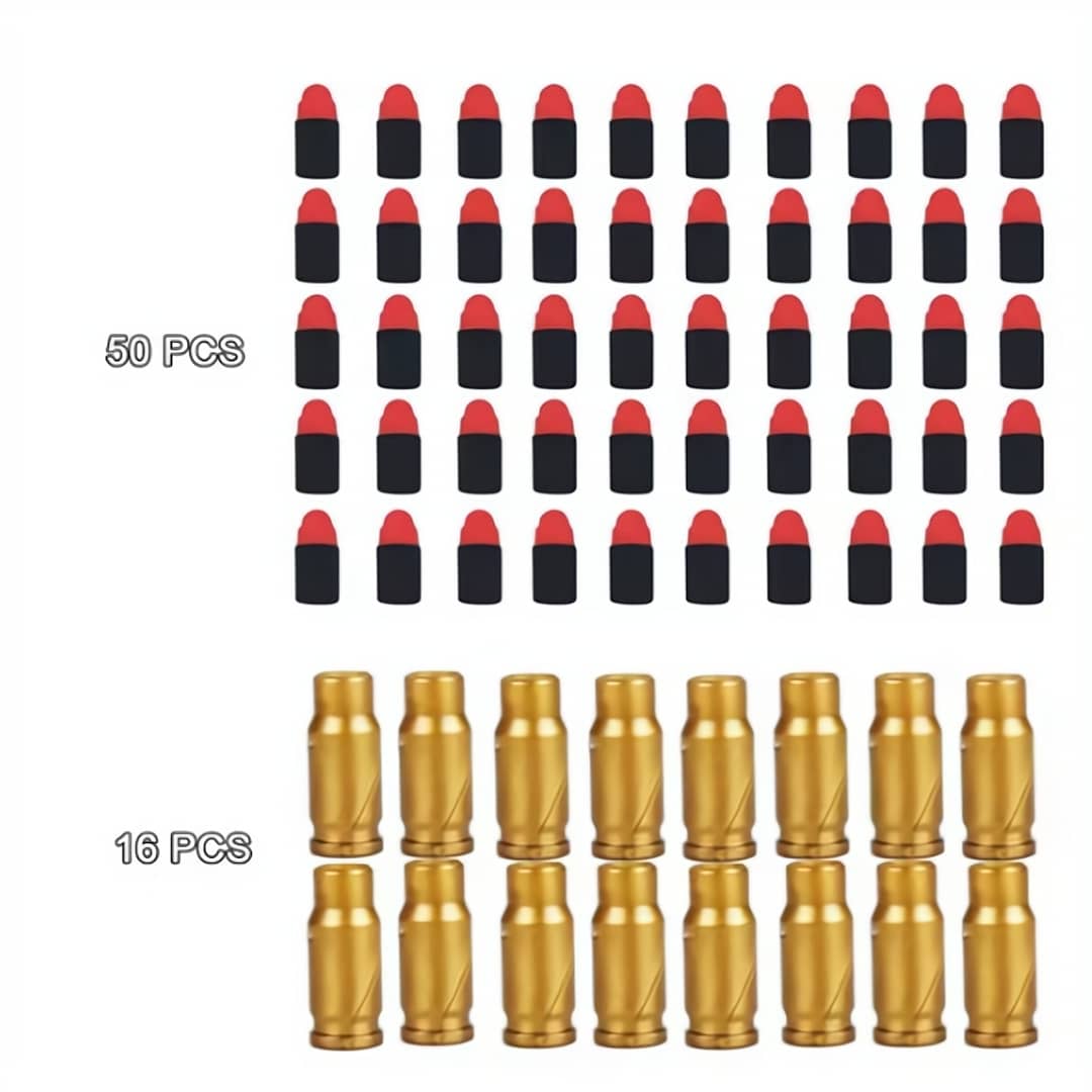 50PCS Soft Foam Bullets & 16 Shells For Toy Guns Colt Desert Eagle Pistol Bullet Safe Toys