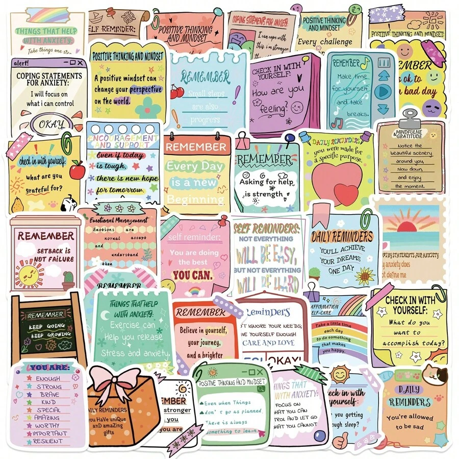 50pcs Psychological Health Notes Graffiti Stickers,Decorate Party Skateboard Phone Case Water Cup Guitar Sticker Sticker Can Diy Sticker