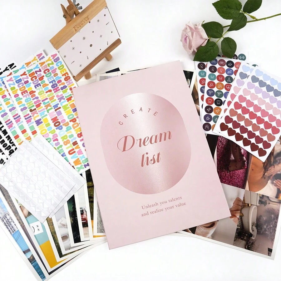 540 Pcs DIY Vision Board Book Set -Included Inspiration Cards And Alphabet Stickers DIY Vision Collage Book For Creating Visual Collages