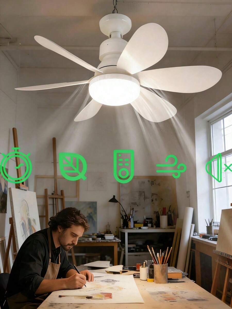 6-Blade LED Ceiling Fan With Light And Remote Control, E27 Base, 40W Dimmable LED Ceiling Fan Suitable For Bedroom And Living Room, 3 Wind Speeds, Timer, Night Light Function
