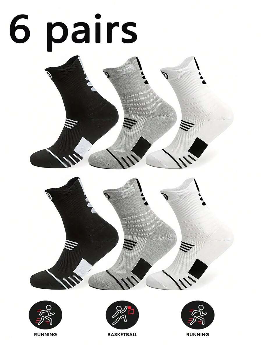 6 Pairs Of Mixed Color Basketball Sports Socks