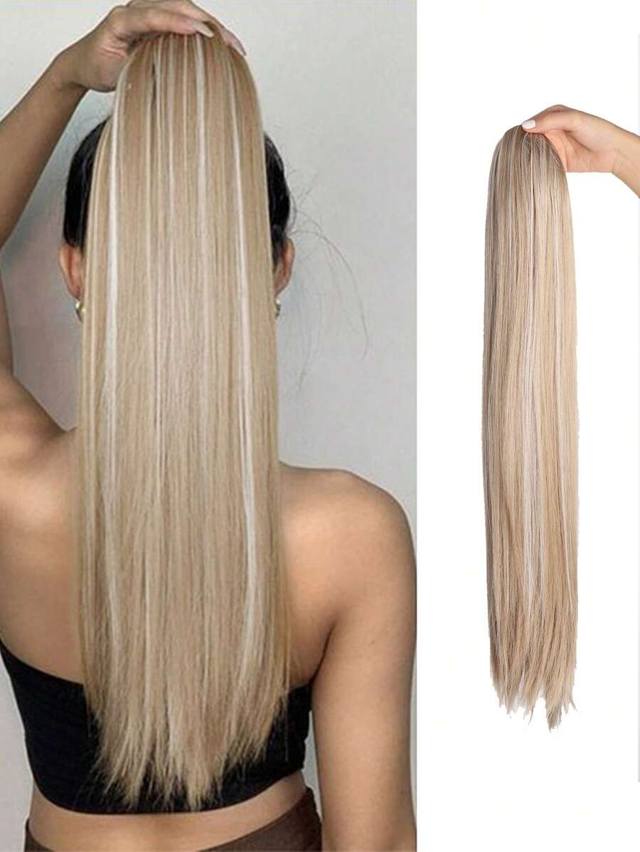 26inch Ponytail Two-Color Mixed Wig Female Long Hair Pull Rope Ponytail Straight Hair Natural Invisible Long Straight Ponytail