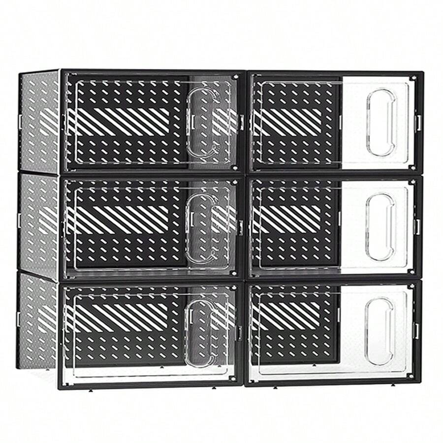 6packs Shoe Storage Boxes, Clear Plastic Stackable Shoe Organizer For Closet, Shoe Box With Magnetic Door, Foldable Shoe Storage Bin, Sneaker Storage Box Shoe Rack Container Holder