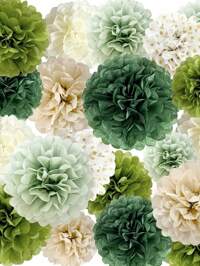 15pcs Sage Green & Gold Party Decoration Set - 10" Paper Lanterns, Paper Flowers, Paper Fans, Suitable For Summer Weddings, Bridal Showers, Graduations, Birthdays, Wedding Decorations, Graduation Parties, Daily & Holiday Parties, Christmas Decorations #3 Bestseller