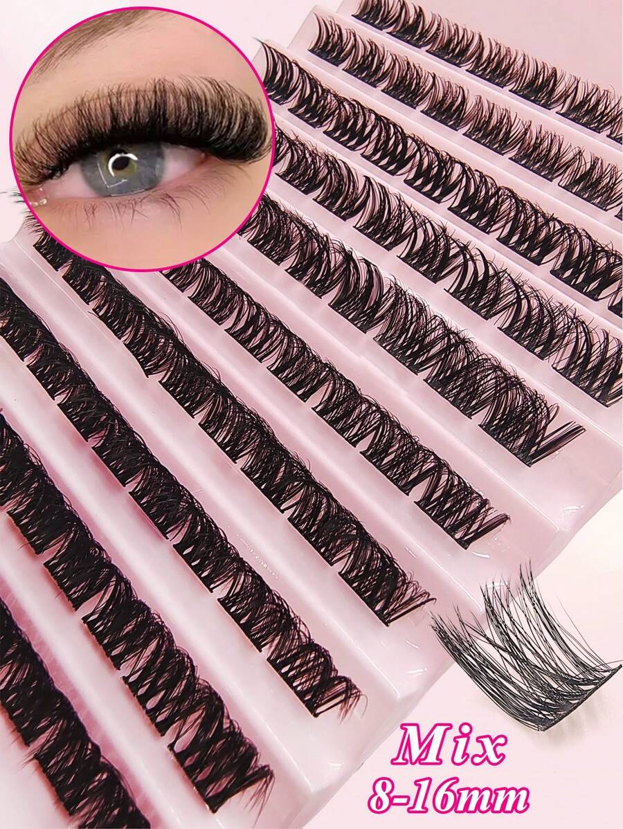 Asiteo 90pcs/Pack False Eyelash Clusters, DIY Individual False Lashes, Natural & Lengthening 8-16mm D-Curl Fluffy False Eyelashes, Reusable, DIY Home False Eyelash Clusters, False Eyelash Clusters, Individual False Lashes, False Eyelashes