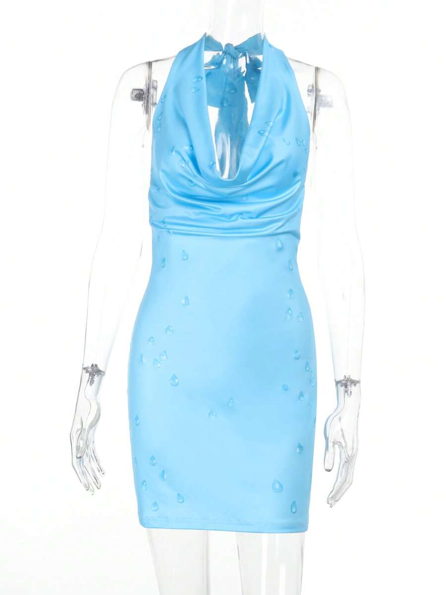 A Drop Print Summer Dress With A Swing Neck Design, Party Dress, For Cocktail