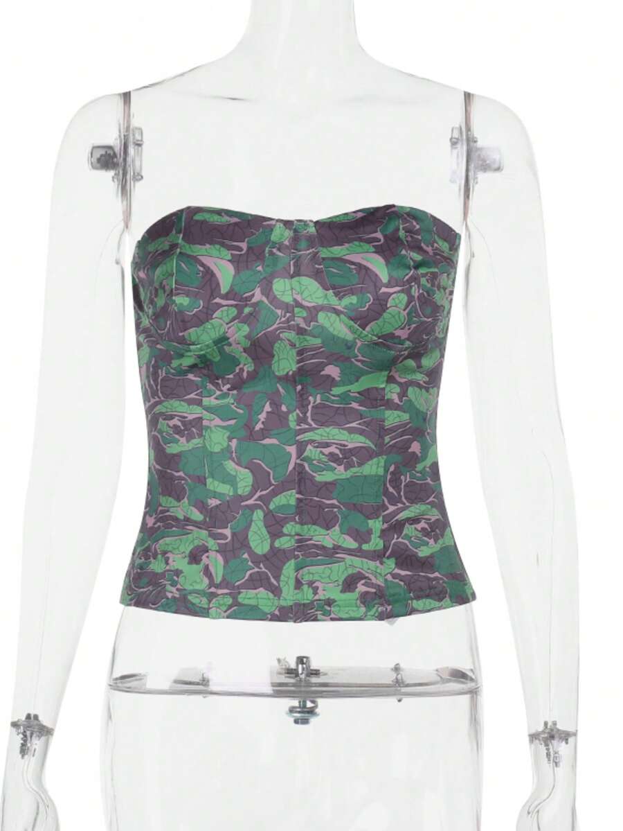 Summer Floral Print Tube Top, Suitable For Parties, Cocktail Events