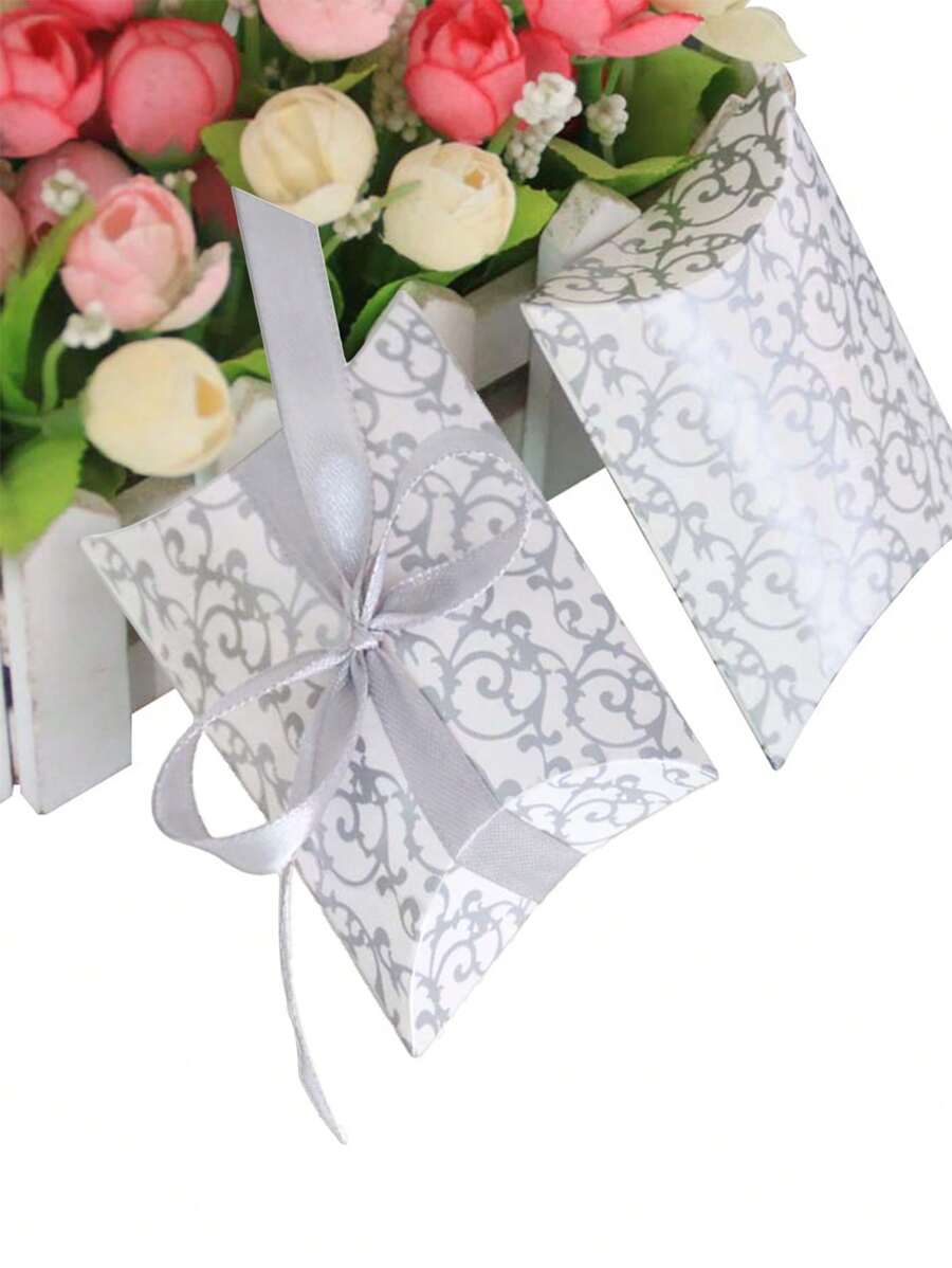 10pcs Pillow Gift Boxes, Silver Floral Pattern, Silver Ribbon Pillow Boxes, Packaging Pillow Boxes, Packaging Boxes, Pillow Gift Boxes, Handmade Gift Boxes, Souvenirs, Tabletop Decor, Weddings, Christmas, Birthday And Party Gift Packaging