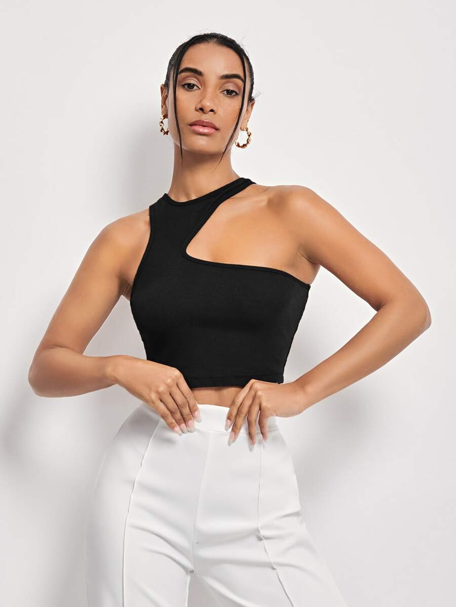 SHEIN ICON Asymmetrical Shoulder Crop Top, Going Out Top