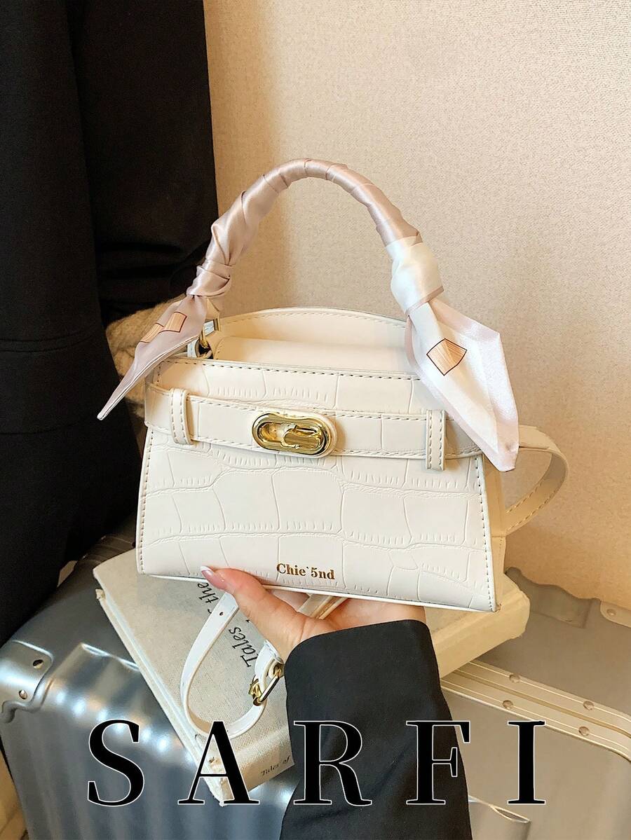 High-End Niche Crocodile Pattern Women's Handbag, Fashionable And Simple Strap Decoration Adjustable Shoulder Strap Messenger Bag, Exquisite Hardware Lock Shoulder Commuter Bag, Magnetic Buckle Opening And Closing Multifunctional Lightweight Storage Messenger Bag, High-End Silk Scarf Decoration Design Handbag, Durable PU Material Women's Shoulder Bag, Suitable For Giving To Friends, Shopping, Dating, Business Trips, Travel And Vacation