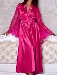 1pc - Wearable Sexy Robe, Bathrobe, Sleepwear, Satin Lace Long Sleeve Nightgown For Women, Christmas/Valentine's Day Gift (Styles Randomly Shipped), Holiday Essential, Autumn, Thanksgiving, Christmas, Carnival, National Day, Independence Day (Styles Randomly Shipped) #2 Bestseller
