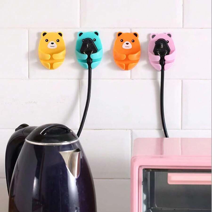 Bear-Shaped Plug Hook - Adorable And Functional For Organizing Cables And Chargers,Durable And Safe For Home And Office Use.(4pcs)