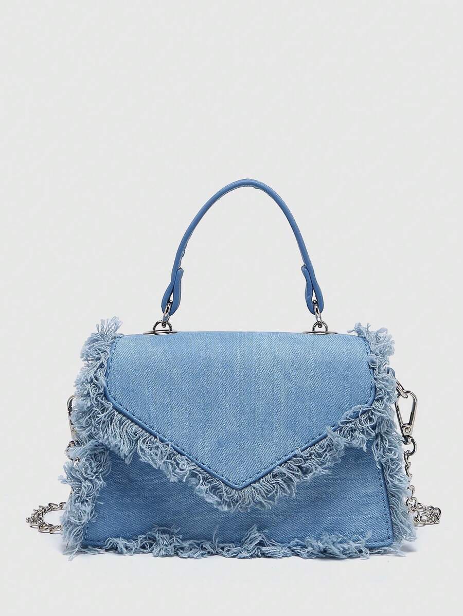 Denim,Pillow Bag,Raw Hem,Contrast Binding