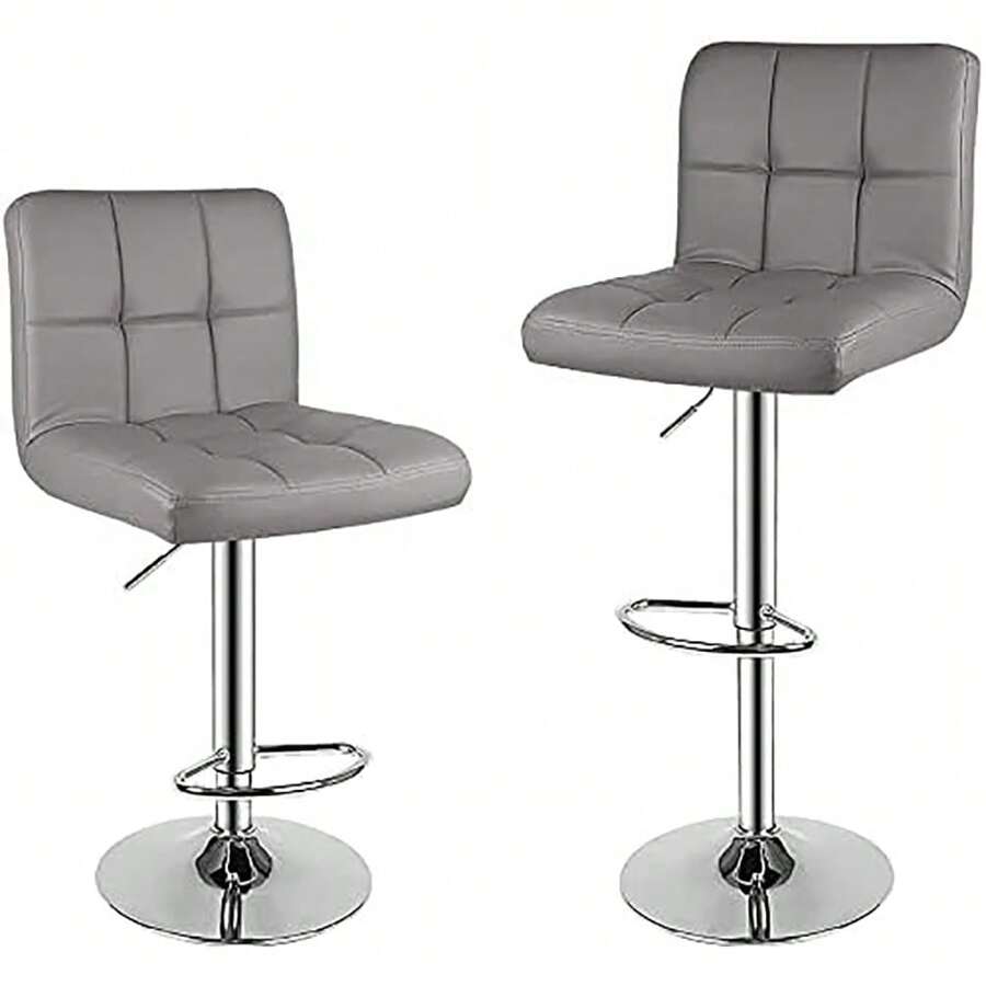 GartistGo Bar Stool Set Of 2 -Grey, 360° Swivel, Upholstered, Height Adjustable Bar Stool