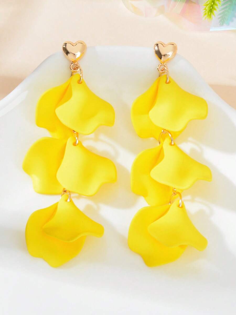 1 Pair New Romantic Yellow Petal Dangle Earrings, Suitable For Women To Wear To Formal Dinners, Dates, Parties And Other Occasions