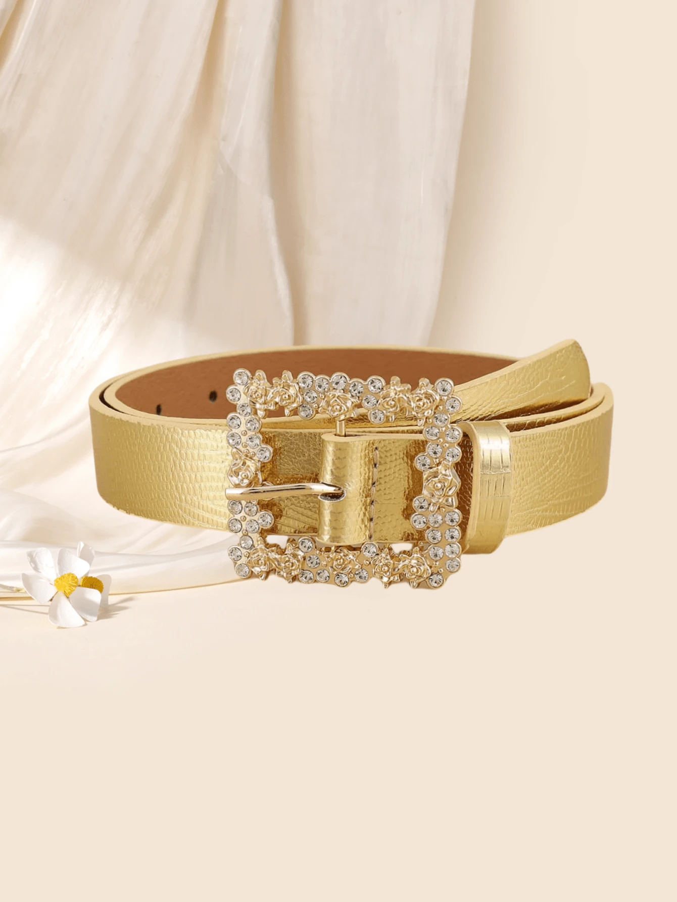 Boho Rhinestone Decor Square Buckle Belt With Hole Punch Halloween Summer, School Fall, Autumn, Halloween