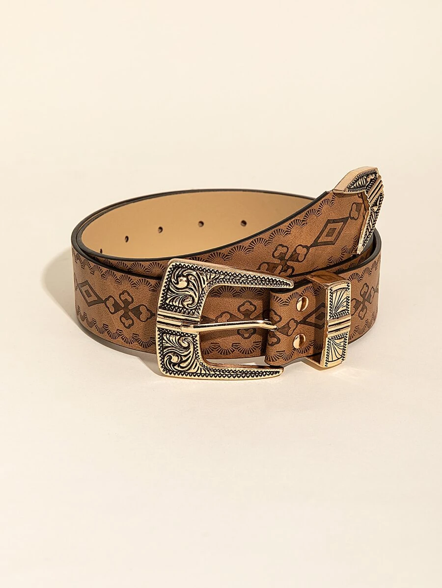 Boho Textured Square Buckle Belt Halloween Summer, School Fall, Autumn, Halloween